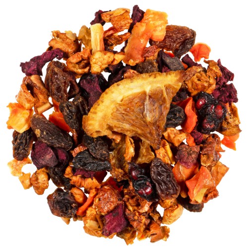 Zutaten: Apfelstücke (Apfel, Säuerungsmittel: Zitronensäure), Weinbeeren, Karottenstücke, Hibiskusblüten, Rote Beetestücke, Orangenstücke, natürliches Aroma, Schisandrabeeren(1%)